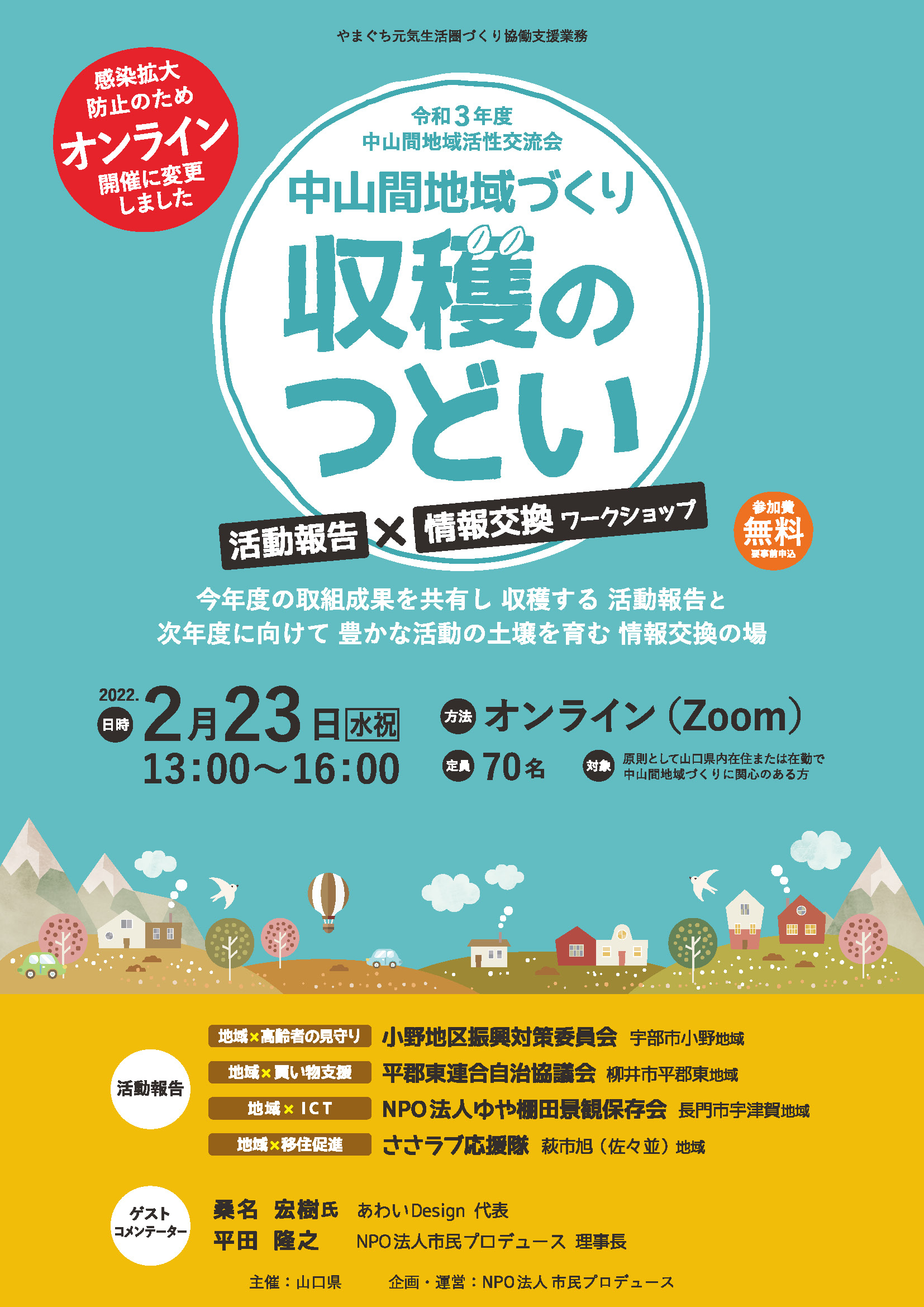 山口県では、中山間地域の人々が住み慣れた地域で安心して暮らし続けられるよう、「やまぐち元気生活圏」づくりに取り組んでいます。